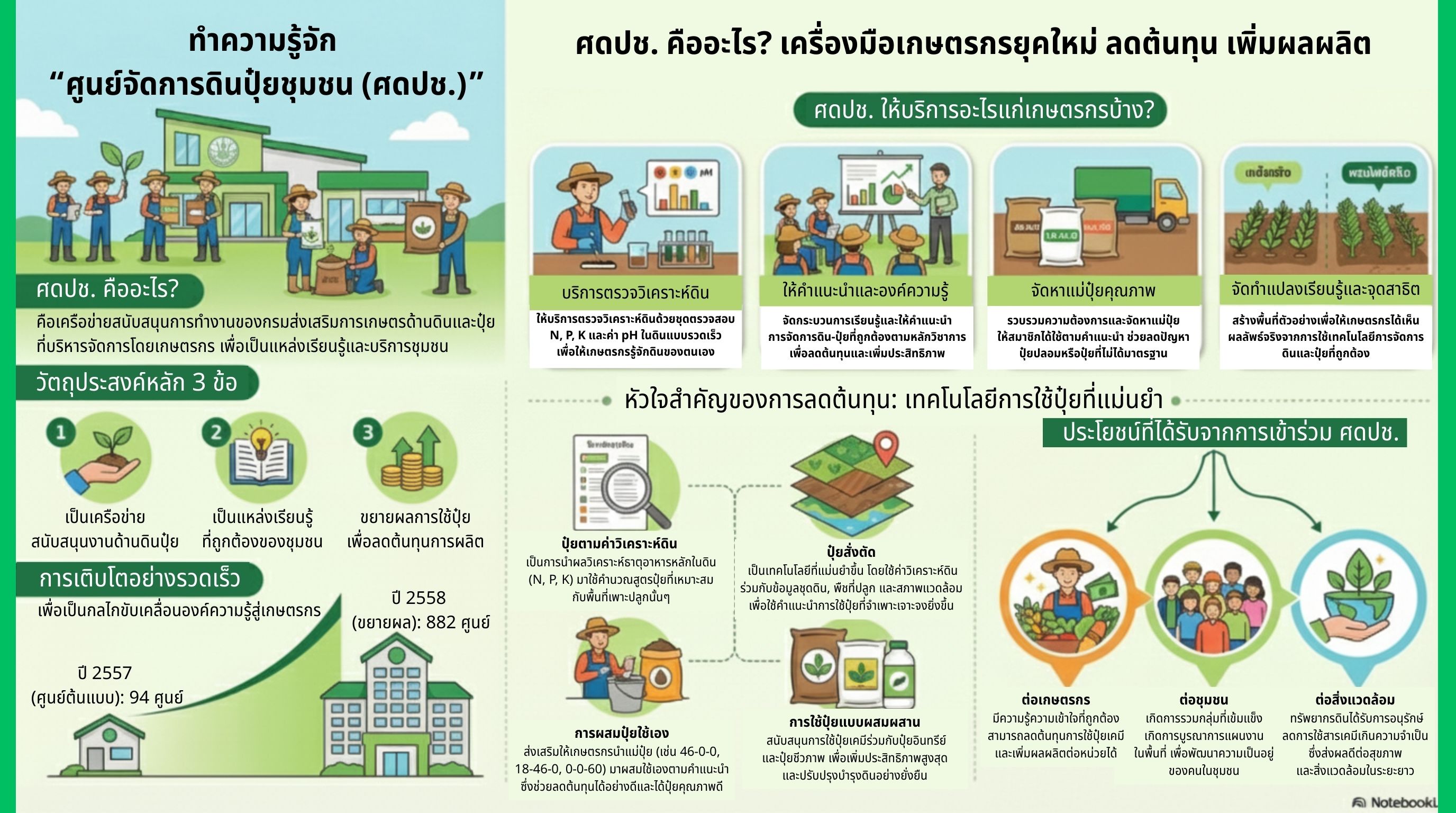ศูนย์จัดการดินปุ๋ย (ศดปช.) คือ เครือข่ายสนับสนุนการทำงานของกรมส่งเสริมการเกษตรด้านดินปุ๋ยที่บริหารจัดการโดยเกษตรกร เพื่อเป็นแหล่งเรียนรู้และบริการชุมชน